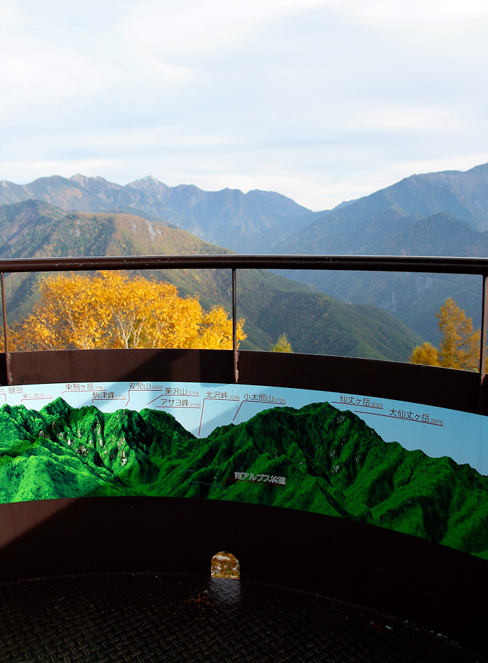 いつも拝見させていただいている、「長谷アルプスフォトギャラリー日記」。その中のこんな記事。さらに桜ん坊さんのところのこんな記事。 鹿嶺高原かぁ…、紅葉かぁ…、そういえば鹿嶺高原ずっと行きたいと思いつつ一回も行ってないな、って事で行ってきました、鹿嶺高原。 実はちょうど2年前のいまごろ、鹿嶺高原にある展望台の内側に貼り付ける360度パノラマ展望図を仕事の関係で制作しました。それがどういう風に形になっているのか、気になりながらも行けず仕舞。今になってやっと出かけた次第です。 着いてみるとさすが標高1800mなだけあって気温が低い。植生も下界とはちょっと違いますね。お目当ての展望台は駐車場から徒歩5〜10分くらい。すぐ着きました。景色は圧巻の360度。行った日は少し雲がかっていたのですが、吸い込まれそうなスケールの山々。圧巻です。 パノラマ展望図の方はというと2年経つにも関わらず色あせもなくとても綺麗な状態でした。ちょうど展望の先に見える山々と付き合わせて見ることができます。 最近、山に登りたい衝動がどんどん大きくなっています。 つい最近もソロアルピニストの栗城史多さんがエベレストに挑戦した特番がやっていて食い入るように見てしまいました。さすがにエベレストなんて恐れ多いですが、せっかく長野の地に住んでいる身、一度は長野の山に登ってみたい。 そんなことを思いながら眺める展望台からの山々は本当に雄大。 いいところに住んでいるんだなぁ、と実感のひとときでした。 PR コメントを投稿する